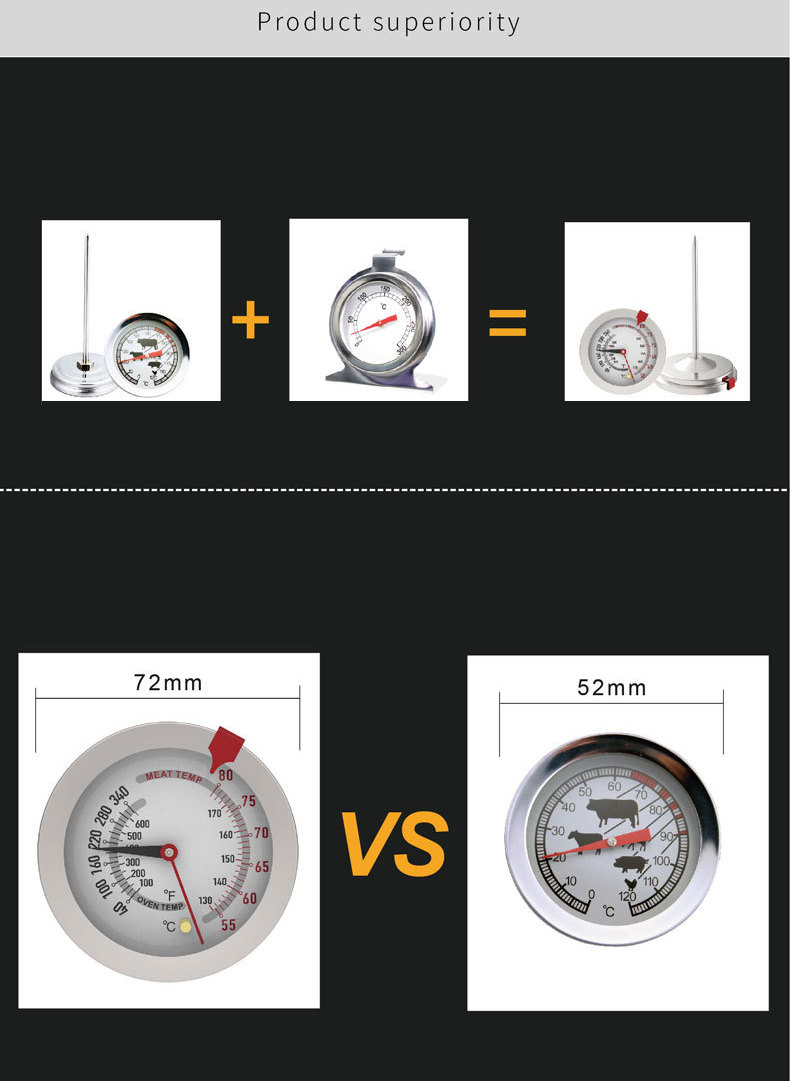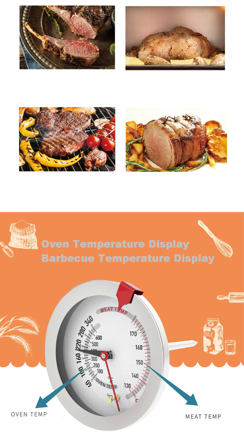 B6AK1173 Bi-metal thermometer stainless steel kitchen food barbecue thermometer barbecue BBQ oven probe thermometer dual-use