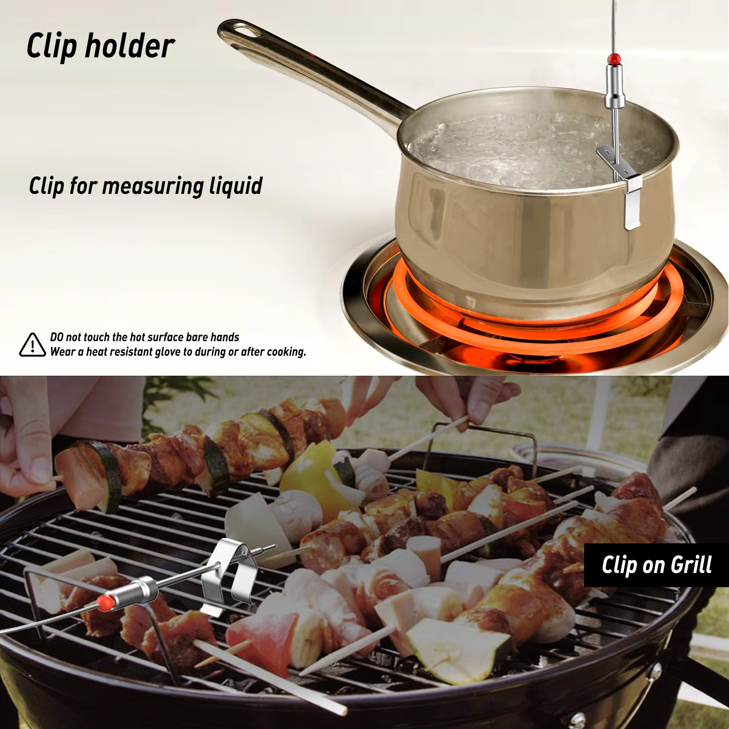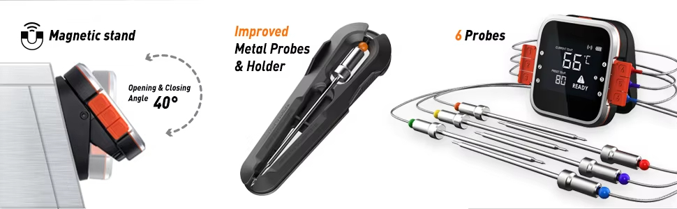 ✔️【MANGET STAND & LARGE BACKLIT LCD DISPLAY】 Lastest design of magnet stand, very convenient to put the kitchen barbecue thermometer, lie flat, upright or magnet with grill,smoker, oven. Large HD LCD for use in low light condition.