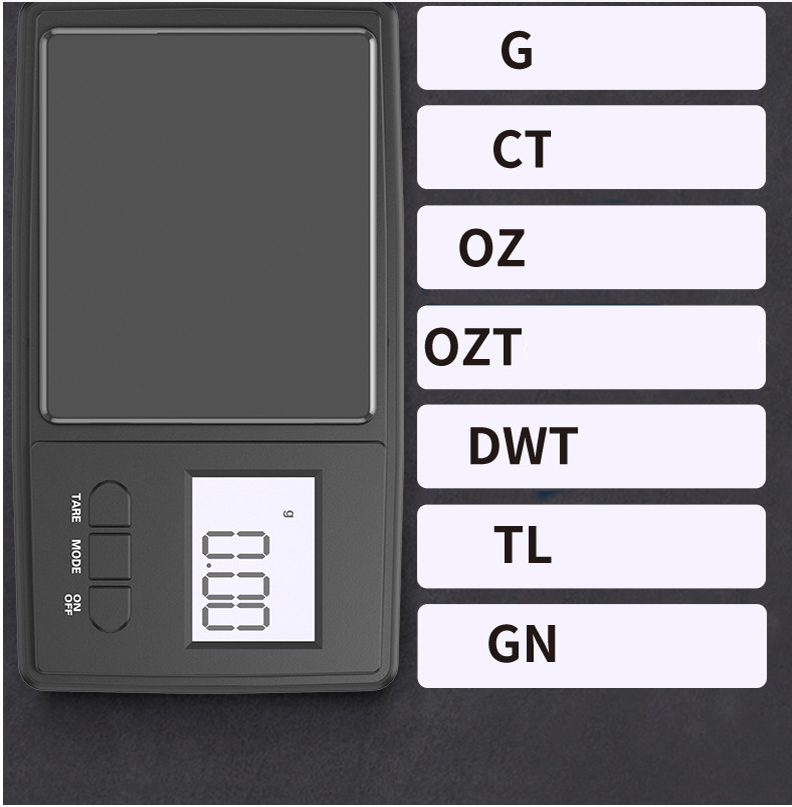 100g/0.01g, 200g/0.01g, 500g/0.01g, 1000g/0.1g