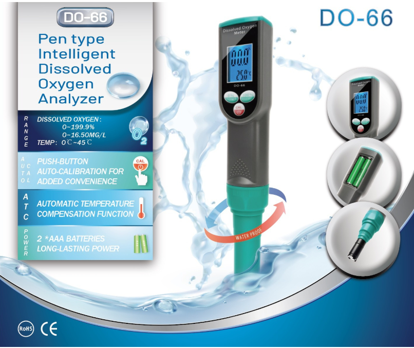 The DO-66 type pen type intelligent Dissolved Oxygen Analyzer (hereinafter referred to as the instrument) is designed to facilitate the user to carry the operation on the spot. The instrument can be divided into two parts: the sensor and electronic unit. The sensor adopts thin film dissolved oxygen electrode. The electronic unit is an integrated operational amplifier + microcomputer chip with automatic temperature compensation function.