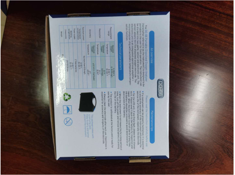 Measurement range: DO: 0~199.9%; 0~16.50mg/L Temperature :0~50℃; 32~122℉