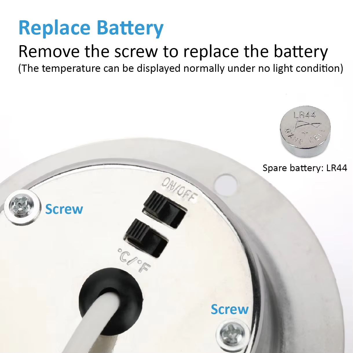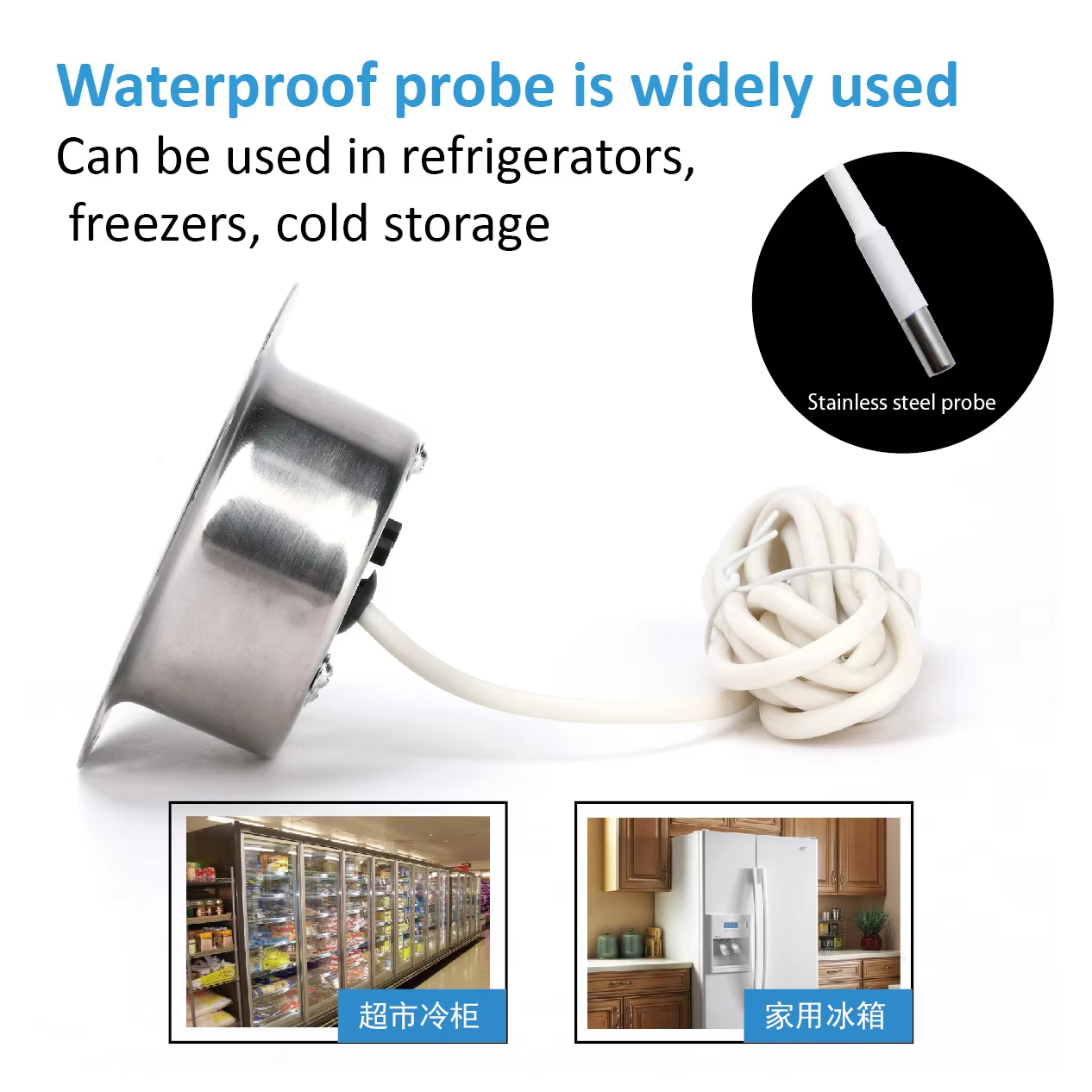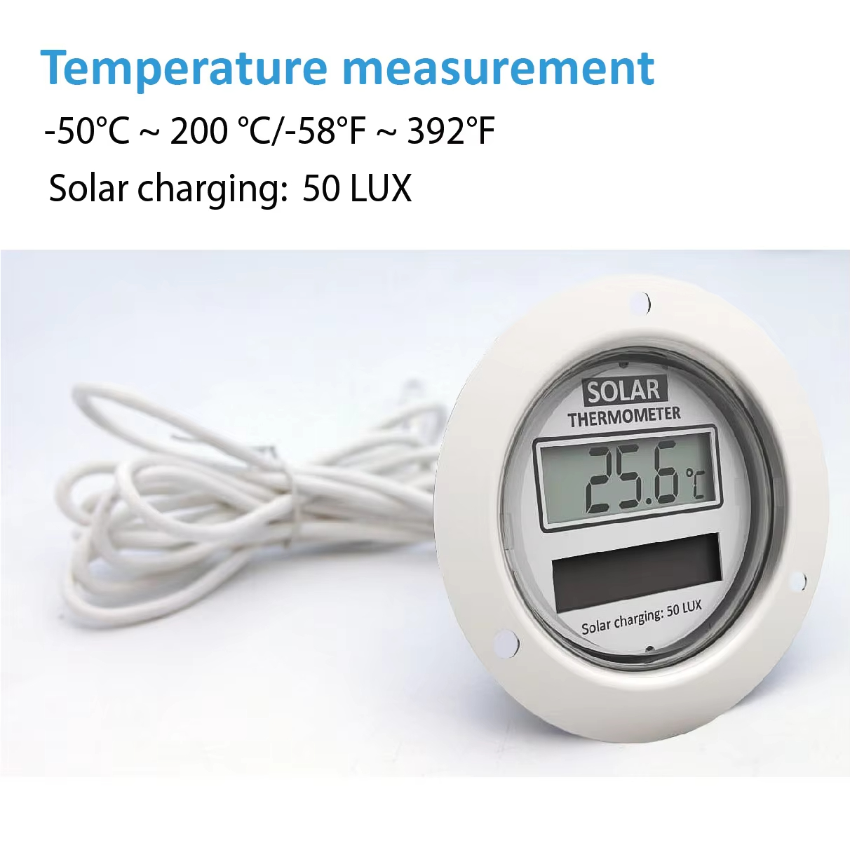 • E2AK1083K02 Digital Solar Thermometer with Probe -50~200℃ for Fridge Freezer Cold Storage, Waterproof Design
