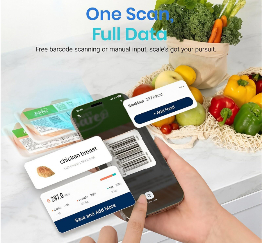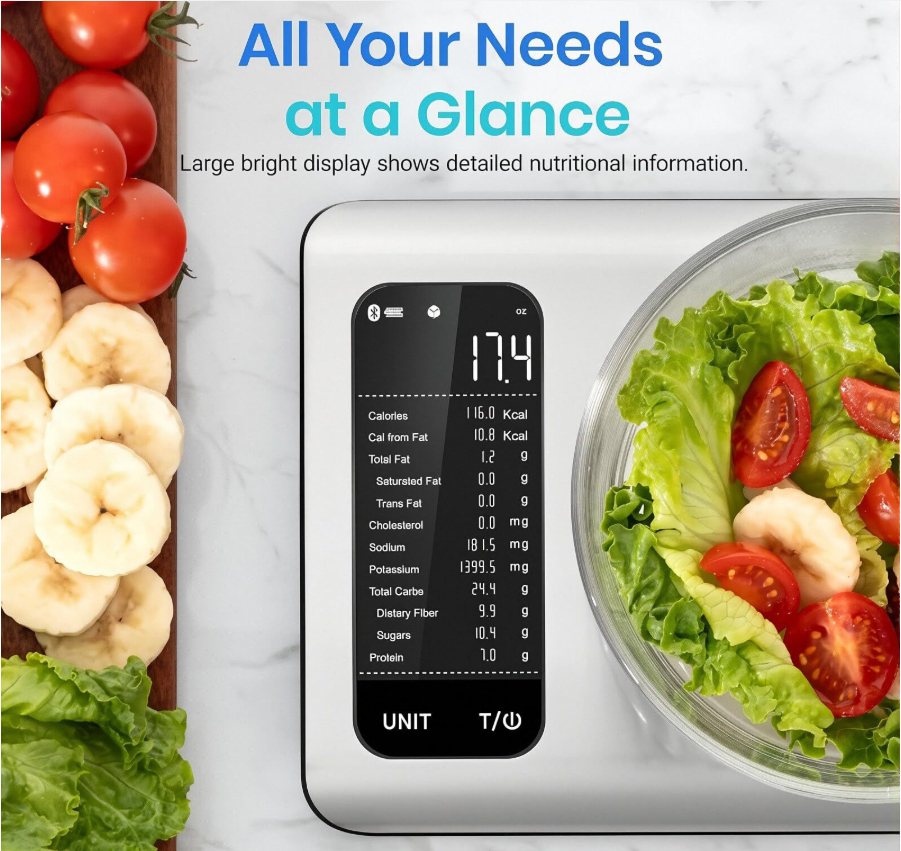 Smart Nutrition Analyst: When your customers add food to the scale, it syncs with our app and instantly displays 13 essential nutrients-including calories, protein, carbs, and fats. It's the perfect companion for weight loss, fitness, and healthy meal planning.