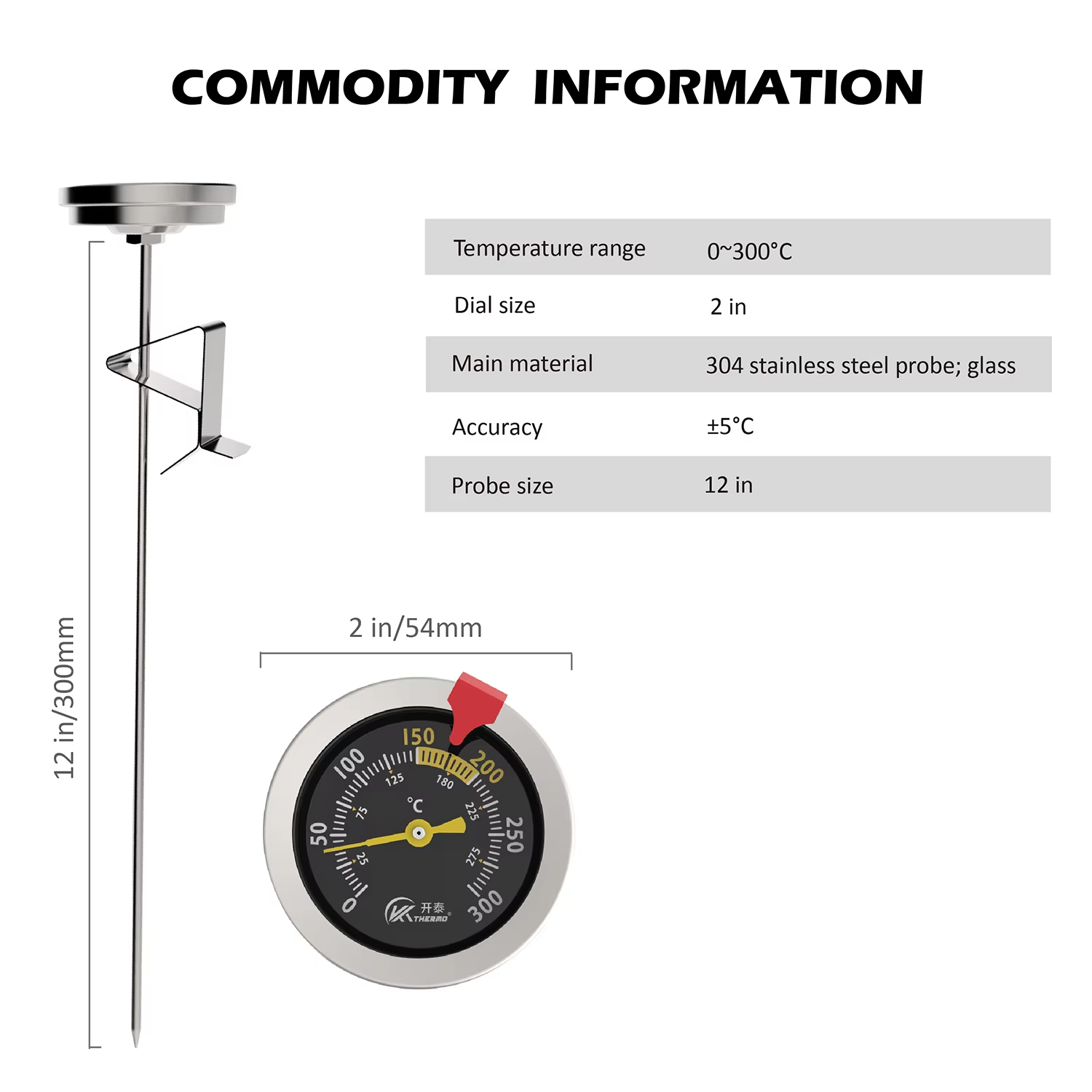 KT-H-15 Deep Fry Dial Thermometer With 12" Stainless Steel Stem Cooking,Candy Deep Fry Thermometer