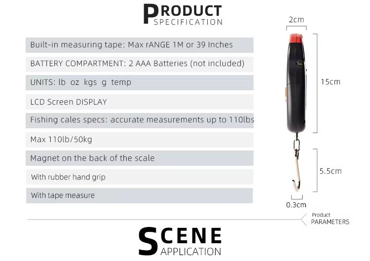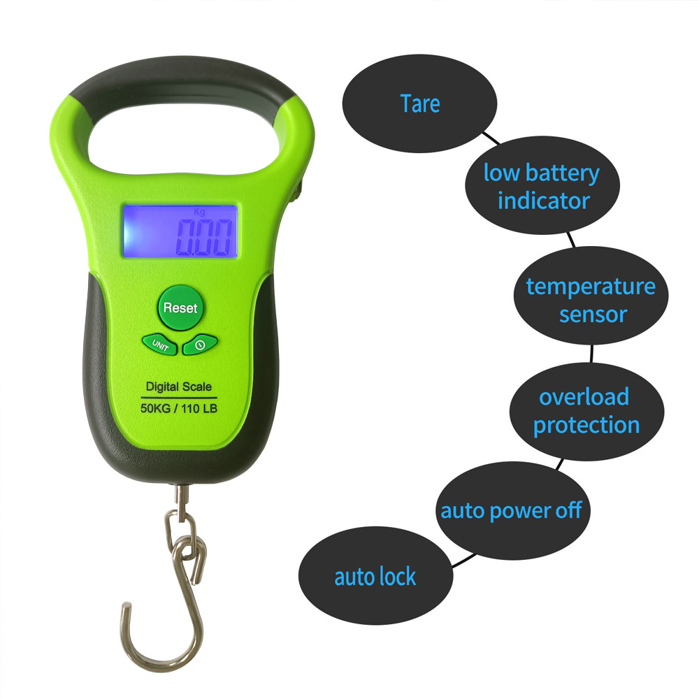 • NS-3 50kg Handheld Electronic Scales Fish Scale Hook Tape Measure Household Handheld Luggage Scale