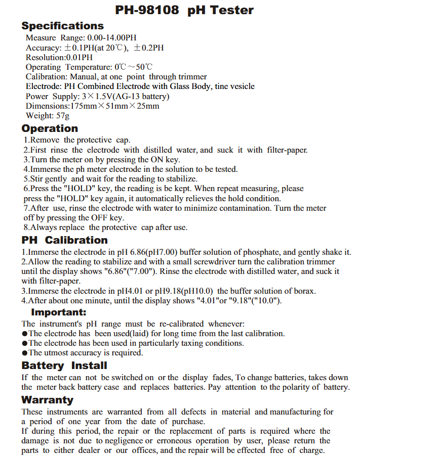 Accuracy :±0.2PH ±0.1PH