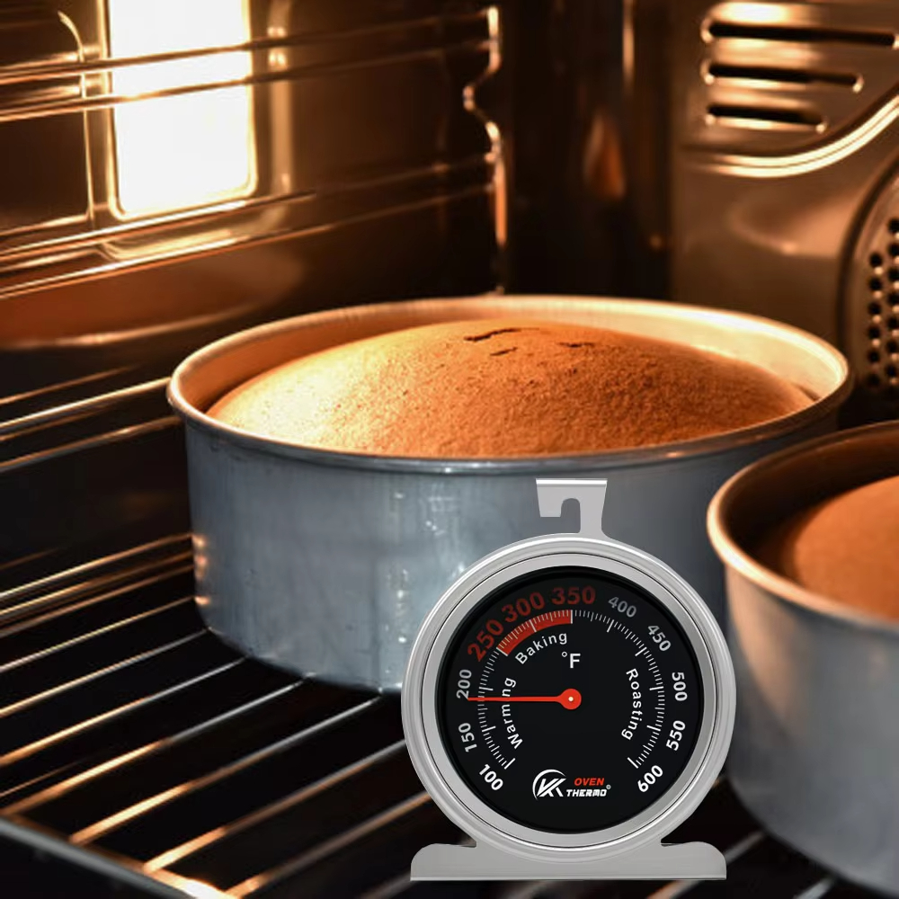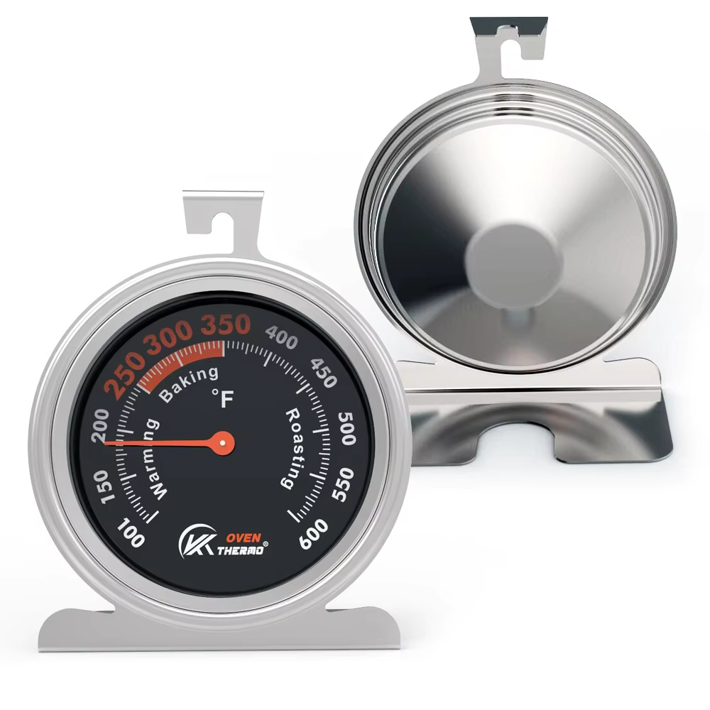 Stainless Steel Baking Oven Thermometer with Large Dial 360 Degrees Rotation Hanger Triangle Holder Meat Thermometer Function