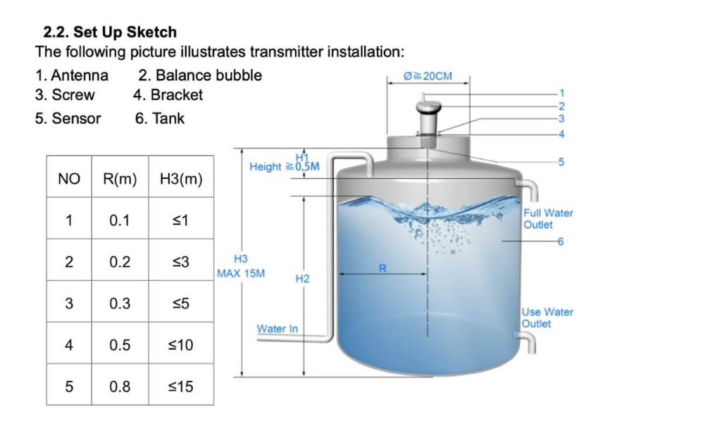 Water level measure rang:0 ~15m