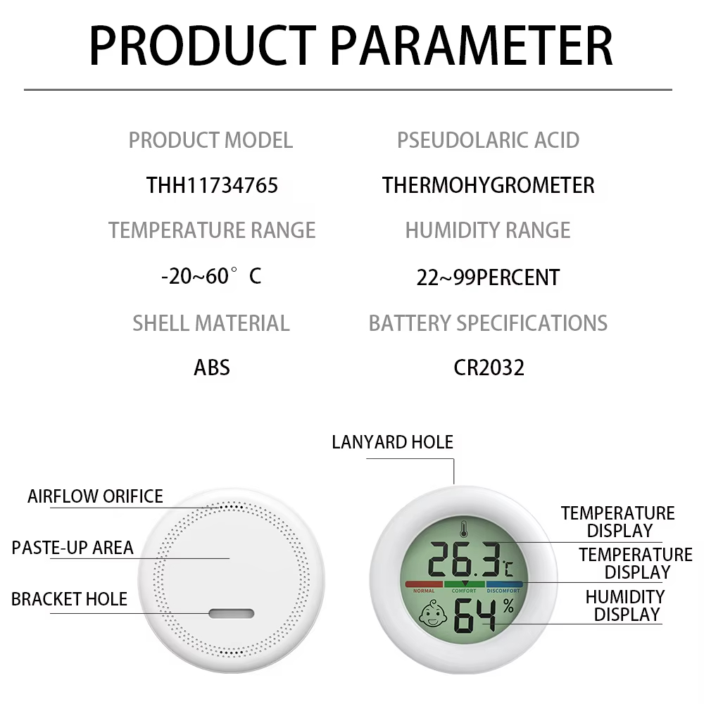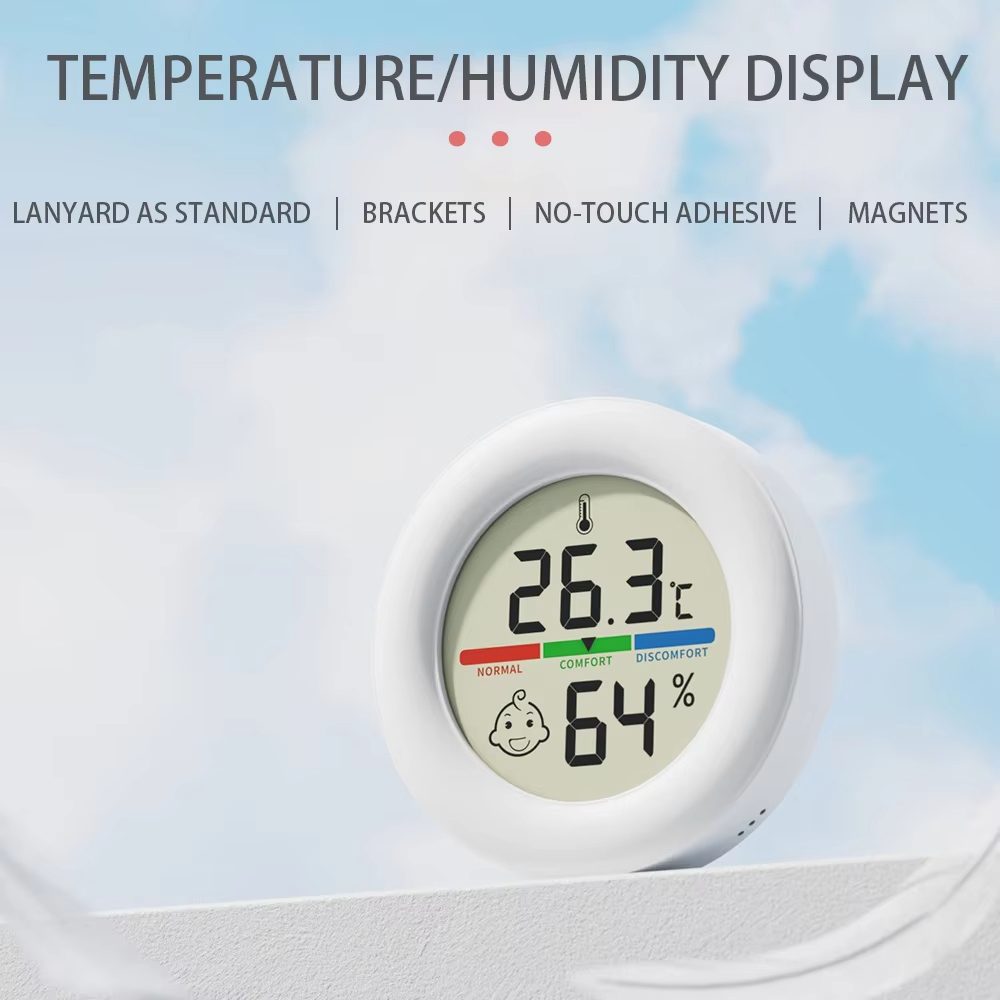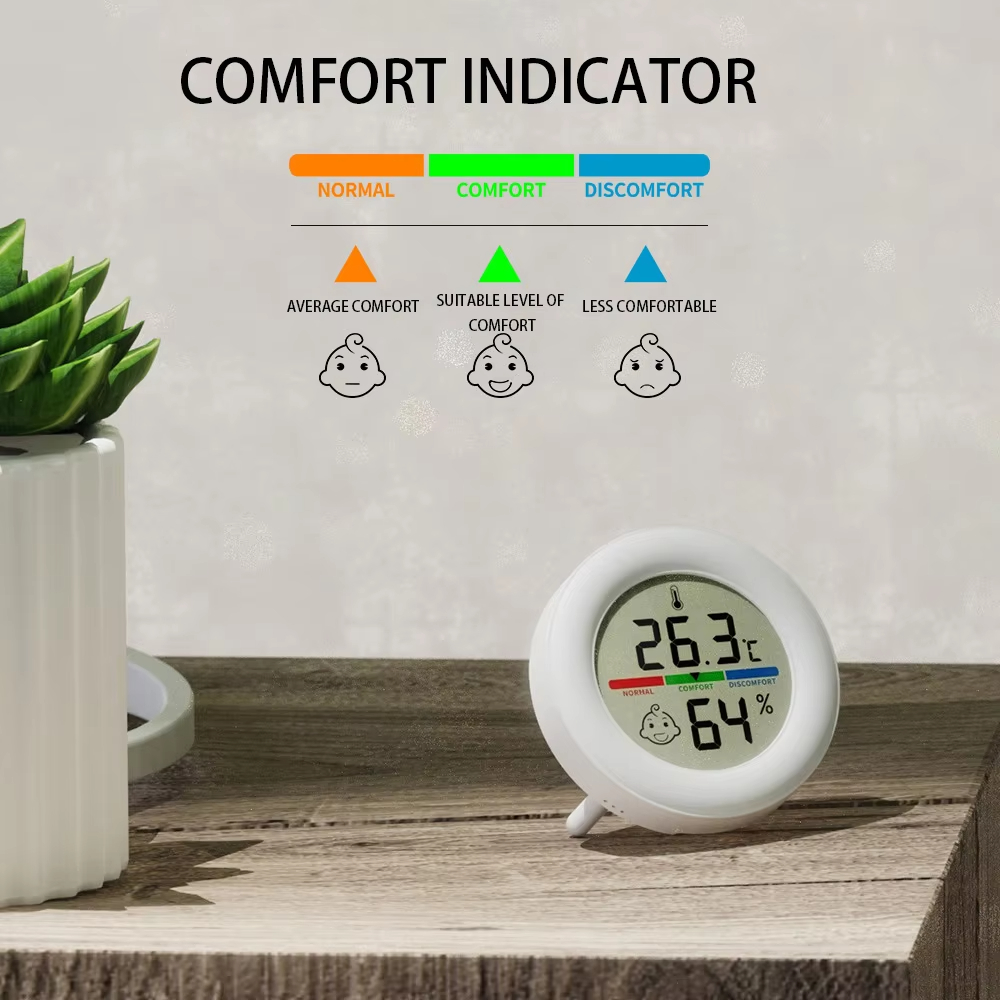 THH11734765 Comfortable Smile Hygrometer for Home Baby Room Office Large LCD Digital Display Round Bracket with Cute Plastic Face