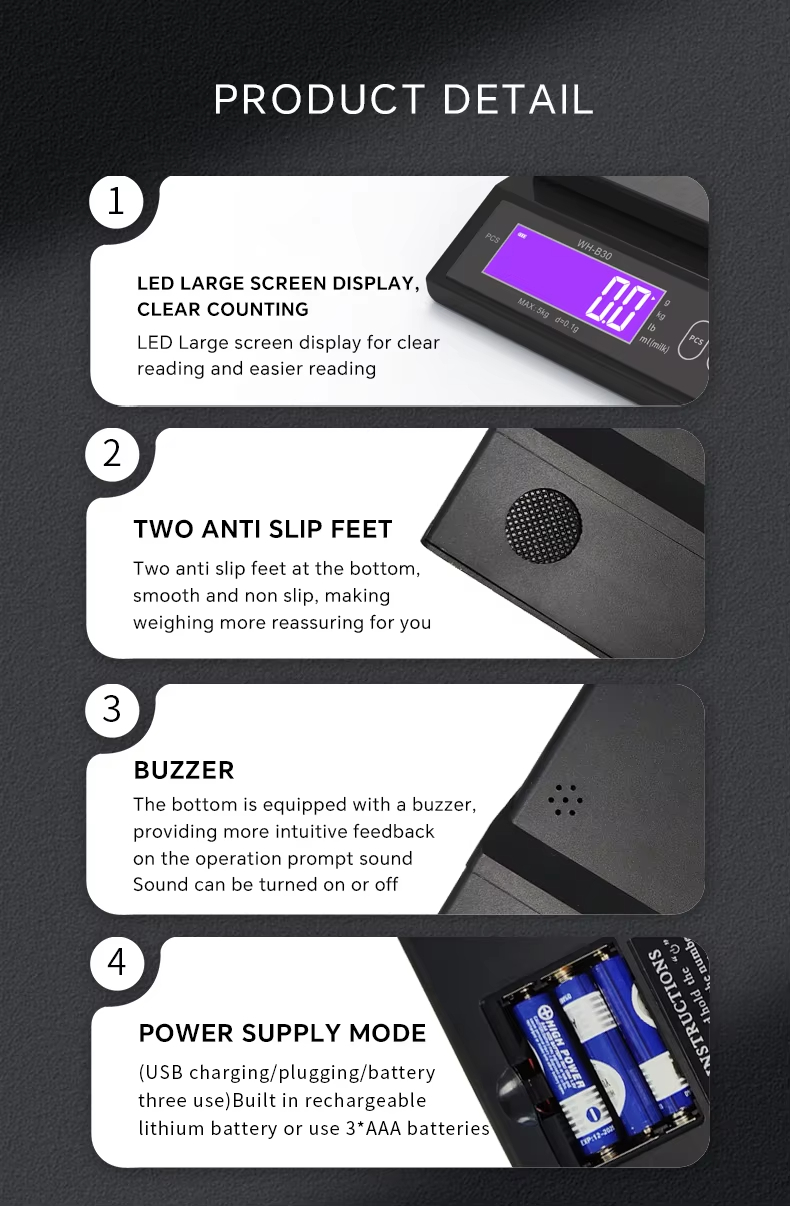 • WH-B30L Stainless Steel Portable Mini Electronic 10kg Digital Kitchen Weighing Scale with Lithium Battery Household