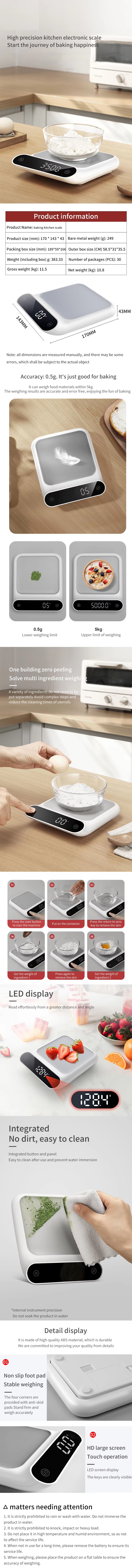 YH-5262 5kg/0.1g New Electronic Multifunction Kitchen Scale Balance Unique Digital High Precision Weighting Accuracy Surface Food Scale